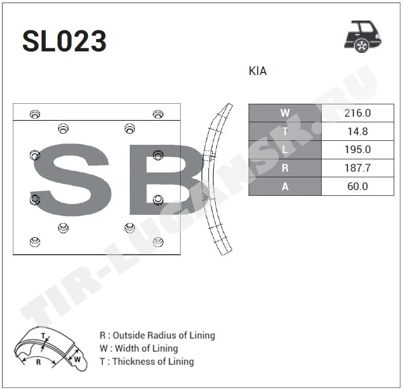 Накладка тормозная задняя 216mm