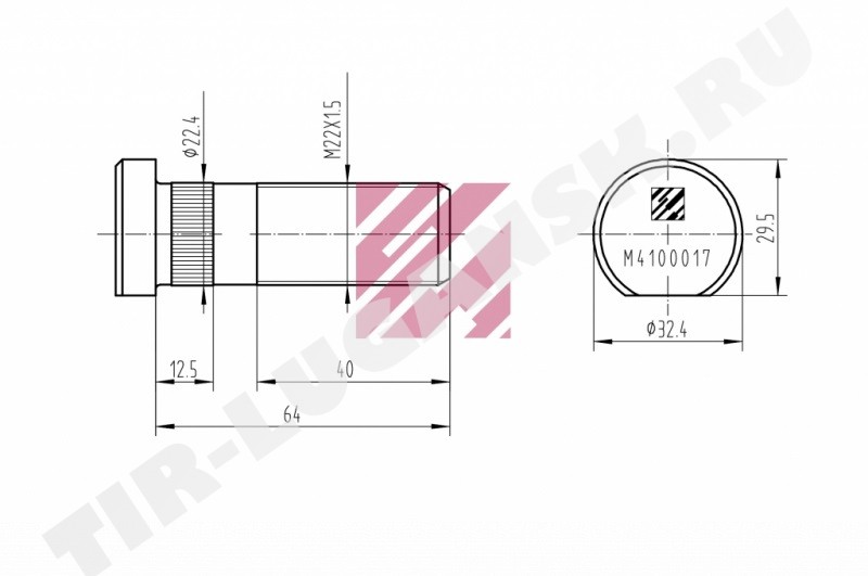 Шпилька колеса М22*1.5*64