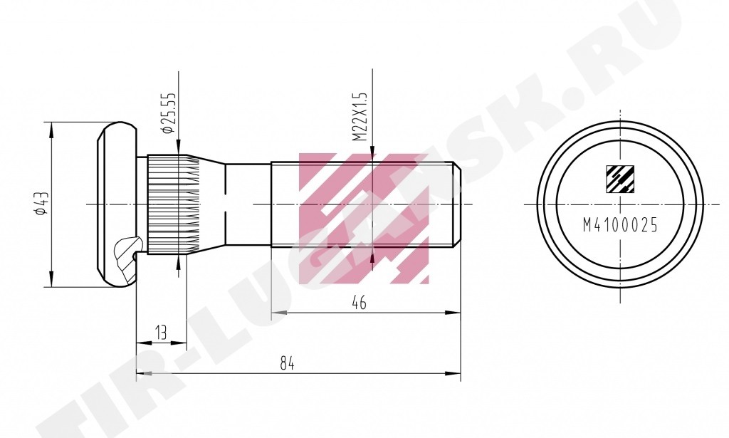 Шпилька колеса М22*1.5*84/94 перед