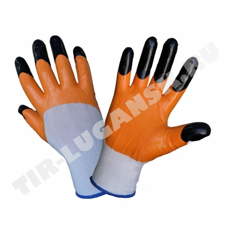 Перчатки трикотаж нейлон с двойн обливом оранж/черн пальцами "лисичка"