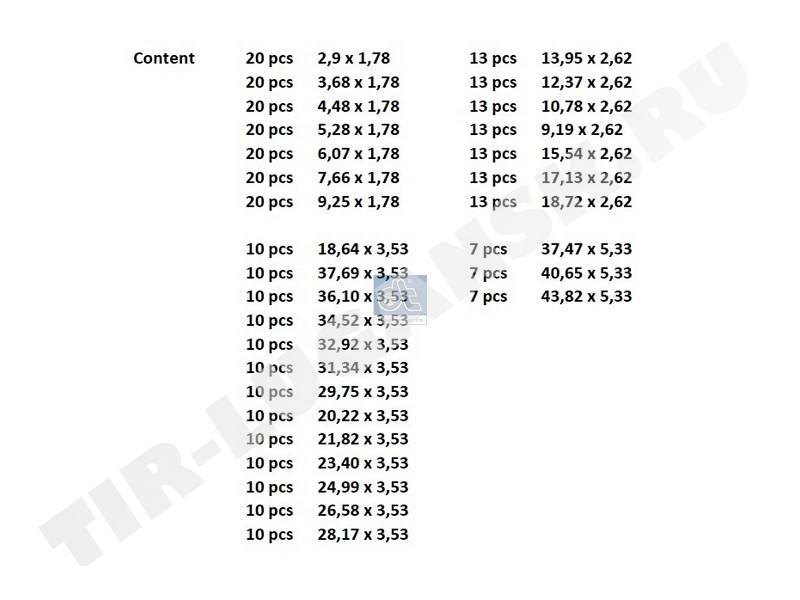 Набор уплотнительных колец